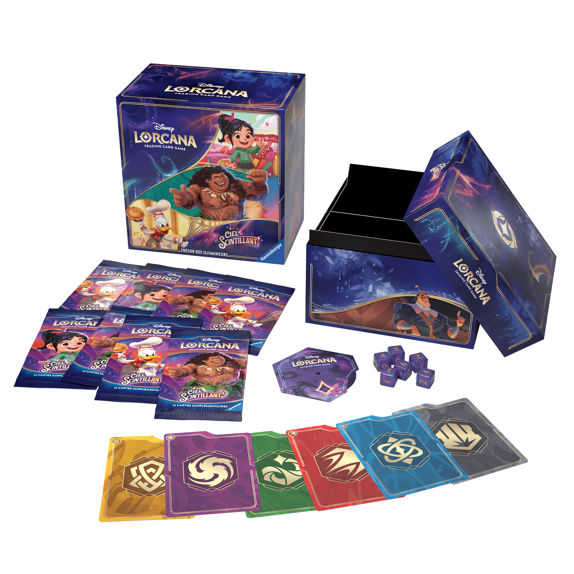 Découvrez le Trove Pack Ciel Scintillant, un ensemble exceptionnel pour tous les collectionneurs et joueurs de Disney Lorcana. Ce pack riche en contenu est conçu pour vous offrir tout ce dont vous avez besoin pour organiser, jouer et enrichir votre collection avec les cartes du Chapitre 5.